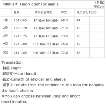Standard reference dimensions for tailoring: Men's kimono and haori