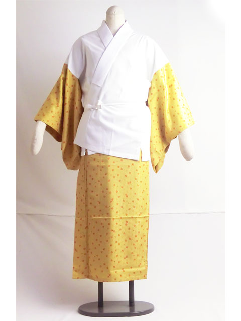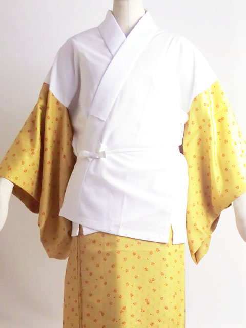洗える二部式襦袢 水玉綸子 桜吹雪柄 辛子(無双袖) 高機能性生地使用 | 京都きもの工房