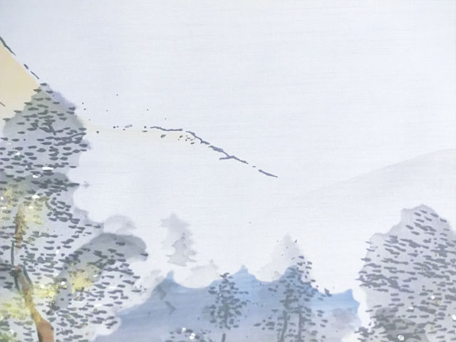 The pattern, in which colors are added to the ink painting, conveys a dignified atmosphere.