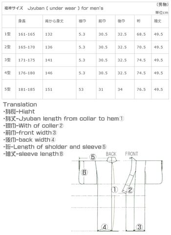 If you want to make a jyuban(kimono underwear) that matches your kimono, please tell us your [height] and Refer to the diagram above to 【①determine the length, ②sleeve length, ③Length of sleeve, ④Width of the sleeve's seam, ⑤Length of sholder and sleeve, ⑥front width, and ⑦back width】 of the kimono.Please let me know the total 8 sizes.