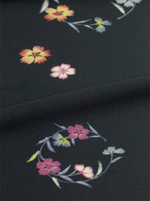 着物柄はぎれ 紅型調花丸柄 黒(送料無料/メール便) | 京都きもの工房