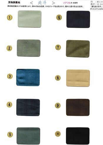 "Hokuto" No. 9 (Dark Brown) is a versatile choice favored by seasoned kimono enthusiasts. It offers an understated presence that subtly showcases one's personal style when the kimono is removed. We highly recommend this for anyone seeking a high-quality polyester lining.