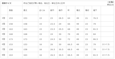 - 1型:羽織丈 長め 95 / 短め89・裄 69.5